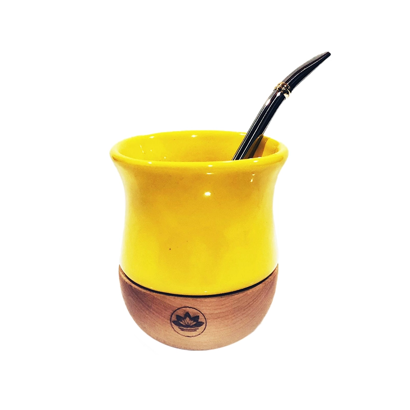 MATE CERÁMICO CON BASE DE MADERA CHAQUITO